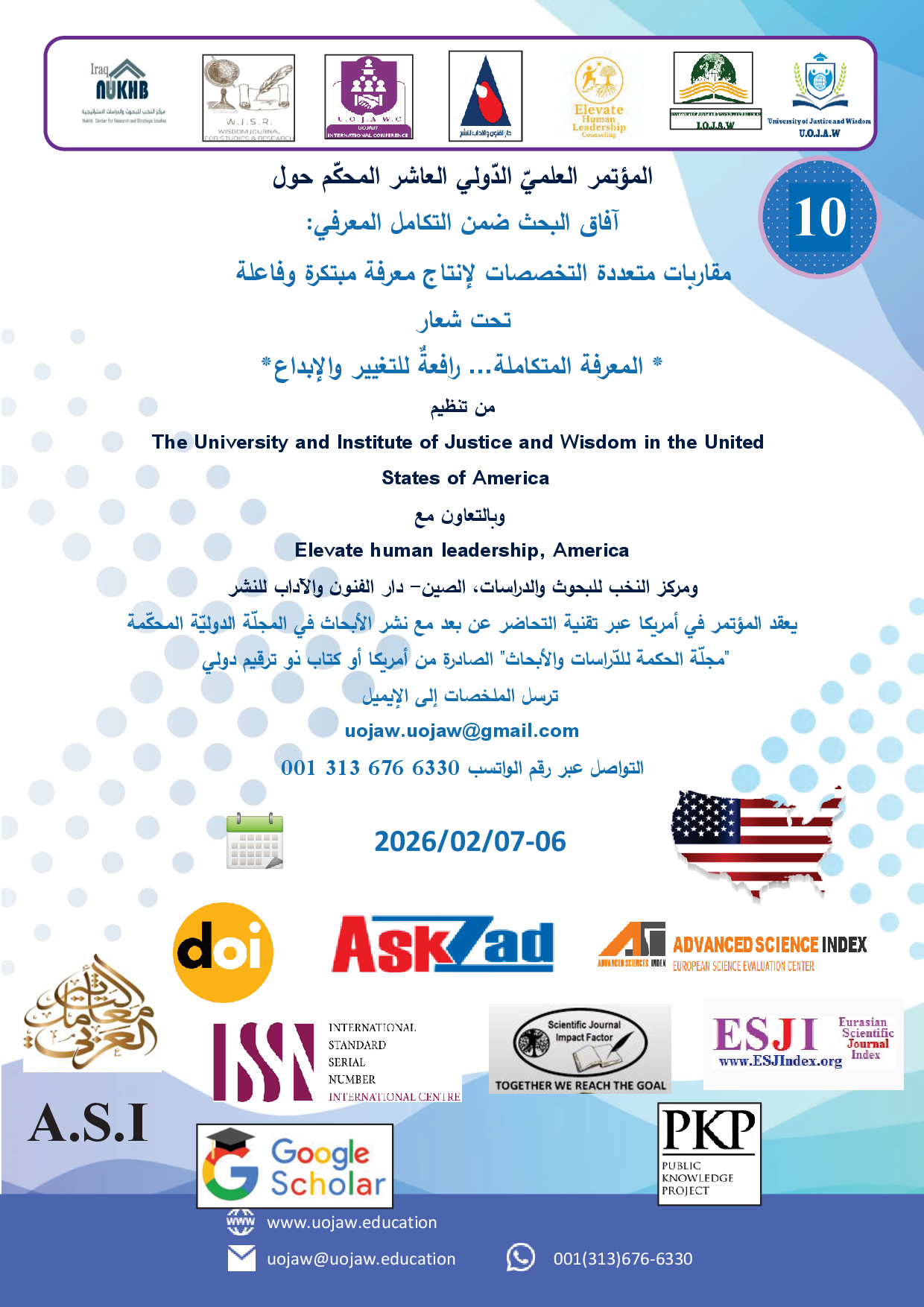 The University and Institute of Justice and Wisdom in the United States of America وبالتعاون مع Elevate human leadership, America ومركز النخب للبحوث والدراسات، الصين- دار الفنون والآداب للنشر