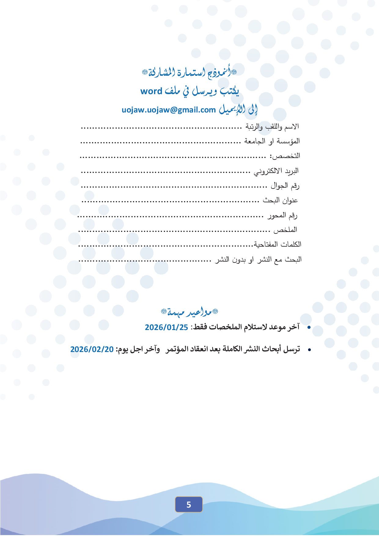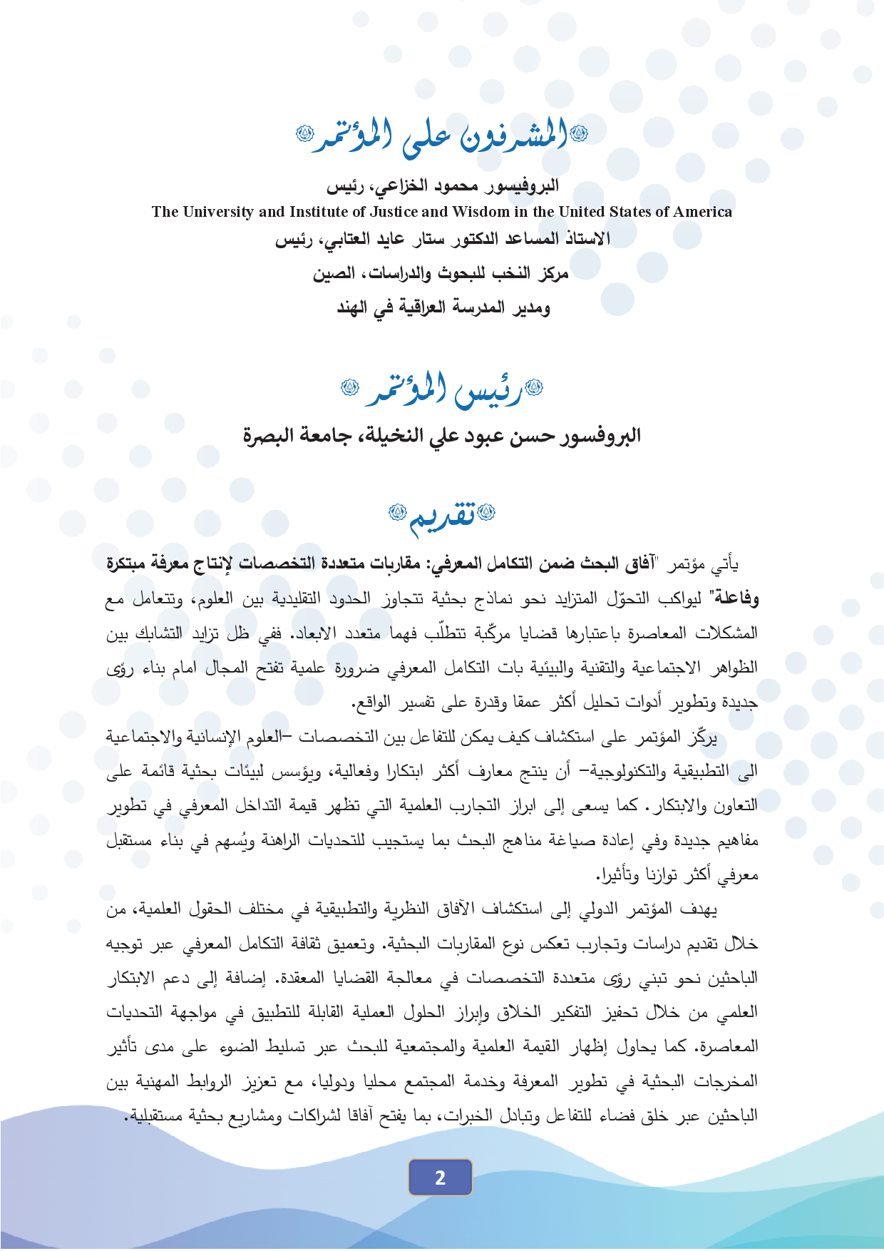 المؤتمر العلميّ الدّولي العاشر المحكّم حول آفاق البحث ضمن التكامل المعرفي: مقاربات متعددة التخصصات لإنتاج معرفة مبتكرة وفاعلة أيام 06-07/02/2026 تحت شعار *المعرفة المتكاملة… رافعةٌ للتغيير والإبداع*